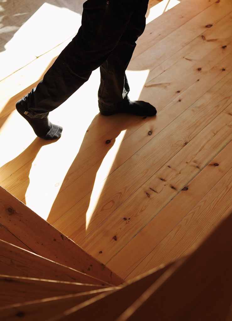 Virke som legat ute länge kan verka ha gjort sitt, men har det förvarats luftigt kan det räcka med en omgång med hyveln för att det ska få nytt liv igen. Här har gammalt virke blivit till en vacker trappavsats. För att ytan ska bli extra stryktålig har den behandlats med hårdvaxolja.