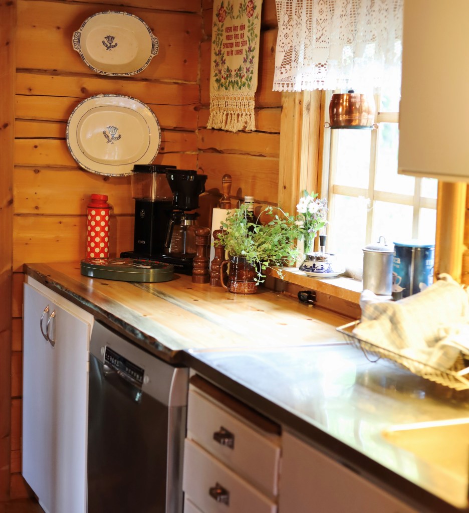 Istället för att hyvla ytterkanten helt rak kan man välja att behålla träets naturliga form. En bänkskiva med live edge smälter perfekt in i en äldre timmerstuga, men kan också vara ett fantastiskt inslag i ett mer modernt hem.